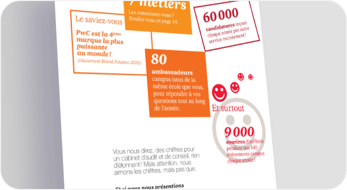 7 métiers 000 Les connaissez-vous ? 0 es 6 reçu es Rendez-vous en page 14. r tu e a tr d o di ar n Le saviez-vous n ca ée p ann ! e t u en q a em ch t ème e recru c PwC est la 4 servi marque la plus puissante au monde ! 80 (classement Brand Finance 2016) ambassadeurs campus issus de la même école que vous, pour répondre à vos questions tout au long de l’année. Et surtout 9 000 sourires distribués Vous nous direz, des chiffres pour pendant nos 140 un cabinet d’audit et de conseil, rien événements campus d’étonnant ! Mais attention, nous chaque année ! aimons les chiffres, mais pas que. Et si nous nous présentions en quelques lettres ?
