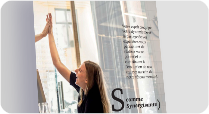 Votre esprit d’équipe, votre dynamisme et le partage de vos expertises vous permettent de réaliser votre potentiel et contribuent à l’émulation de nos équipes au sein de notre réseau mondial. comme Synergisante PwC | 35